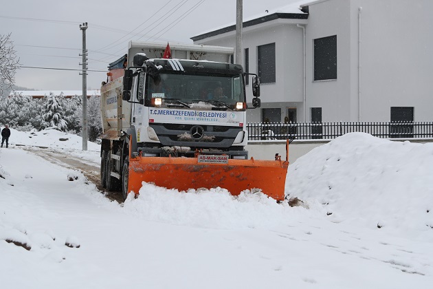 Merkezefendi’nin özellikle yüksek bölgelerinde etkili olan yoğun kar yağışının vatandaşları olumsuz etkilememesi adına karla mücadele çalışmalarını etkin bir şekilde sürdüren Merkezefendi Belediyesi yol açma, kar küreme ve kar temizliği faaliyetlerini sürdürüyor. Merkezefendi Belediyesi Fen İşleri Müdürlüğü ekipleri cadde ve sokaklarda greyder ve kar küreme araçları ile çalışmalarını gerçekleştiriyor. Merkezefendi Belediyesi Fen İşleri Müdürlüğü ekipleri buzlanma ve yol kapanma durumlarına karşılık sabaha kadar teyakkuz halinde bulunacak.