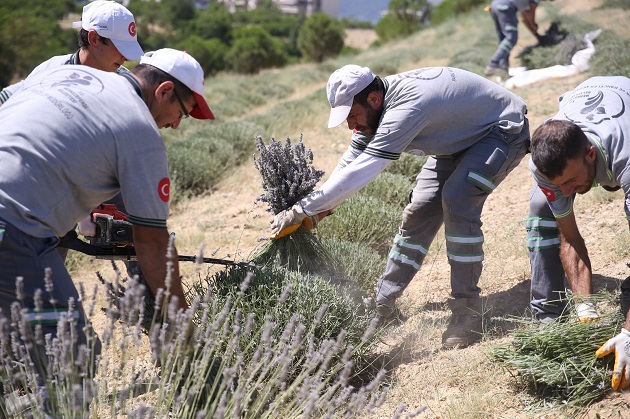 Bu yıl baharın gelmesiyle birlikte bahçede gerekli temizlik ve bakımı yapıldıktan sonra 15 bin adet lavantanın hasadı Park ve Bahçeler Müdürlüğü ekipleri tarafından gerçekleştirildi.