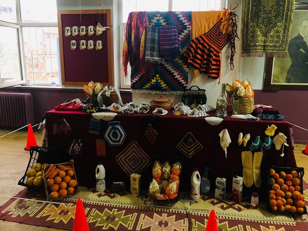 Yöresel kıyafetlerin, kilim ve kıyafetlerin de kullanıldığı etkinlikte sınıf öğrencileri yanlarında getirdikleri yiyeceklerle yerli malı haftası kutladı.