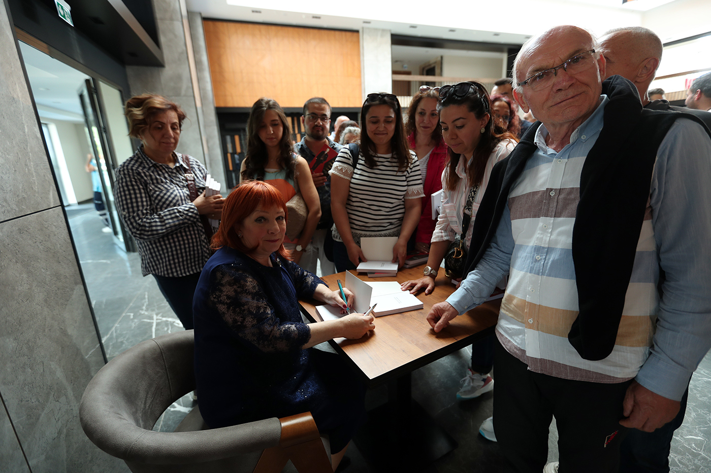 Gazi Mustafa Kemal Atatürk’ü anlatan araştırmacı-yazar Kalıpçı, “Ben 30 yıllık Atatürk araştırmacısıyım. 30 yılda arşivlerde üçüncü bir Mustafa Kemal Atatürk buldum. Bizim nesile aktarılmayan ve hala daha aktarılmamaya devam eden bir üçüncü Mustafa Kemal Atatürk… İşte o Mustafa Kemal Atatürk ile asker ve devlet adamı Atatürk’ü birleştirdiğimde esas canlılığı o gün anladım. İşte bugün ben 19 Mayıs’ın, Mayısla adı yan yana olan Mustafa Kemal Atatürk’ü birlikte paylaşarak bu coşkuyu kutlayalım istiyorum” dedi. Söyleşiye çok sayıda davetli katıldı. Söyleşi sonunda araştırmacı-yazar İlknur Güntürkün Kalıpçı, dinleyicileri tarafından ayakta alkışlandı. İzmir Marşı hep bir ağızdan söylendi. Merkezefendi Belediye Başkanı Şeniz Doğan, İlknur Güntürkün Kalıpçı ‘ya çiçek hediye ederek, teşekkür etti. Kalıpçı ise Başkan Doğan’a kitaplarını hediye etti.