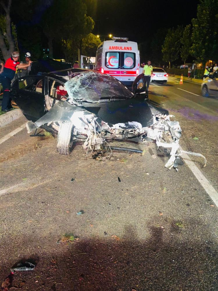 Seyir halindeyken bir başka aracın kameralarına yansıyan o görüntülerde otomobilin hızlı bir şekilde kayarak refüjdeki ağaçlara çarpması yer aldı.