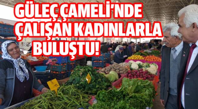 Çameli Belediye Başkan adayı Muhterem çetin ile birlikte Pazar yerini ve esnafı tek tek gezen Güleç, Çameli’nin emekçi kadınlarının nasırlı elleri yeni bir dünya kuracaktır. Bu dünya eşit, özgür ve başı dik insanların dünyası olacaktır. Biz “Üreten ve Birleşen Türkiye” programımızı kadınlarımızın gücüne güvenerek hazırladık. Çamelili kadınlarımızda bu programımızı gerçekleştirmede en önemli dayanağımızdır. Önce kadına iş, aş sağlamalıyız ki dünya daha güzel olsun dedi.