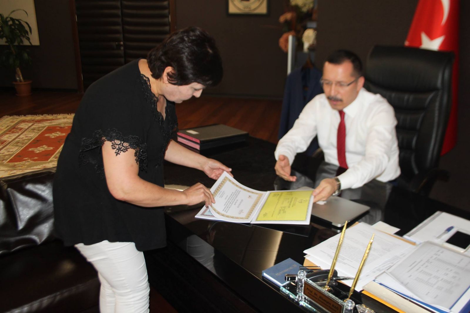 HABERLER GERÇEĞİ YANSITMADIEşi Derya Bağ için “Gazi Üniversitesi Eğitim Fakültesi Arapça Öğretmenliğini 1998 yılında derece ile bitirdi ve Arapça Öğretmeni oldu. Öğretmenlik yaparken, 2 yıllık önlisans ilahiyatı bitirdi, DGS sınavına girdi, Dokuz Eylül İlahiyatı kazandı. Şu an son sınıfta 2 dersi var. Bitirdiğinde iki 4 yıllık fakülte, bir 2 yıllık önlisans mezuniyeti olacak. Aynı zamanda 2 yabancı dil biliyor, 22 sertifikası var ve 32 ülke gezdi. İGEDER’in bütün toplantılarına katıldı. Ayrıca bu göreve gelmeden önce 45 gün Ürdün’de eğitim aldı.” diyen Rektör Prof. Dr. Bağ, “basında yer alan haberlerde 4 yıllık Arapça Öğretmenliği mezuniyeti yazılmayarak eşim önlisans mezunu, lisans öğrencisi olarak gösterildi. Önlisans mezunu birinin bırakın öğretmen olmasını, 2 yıl müdür yardımcılığı ve 1 yıla yakın kurucu müdürlük yapması mümkün değildir” açıklamasını yaptı.