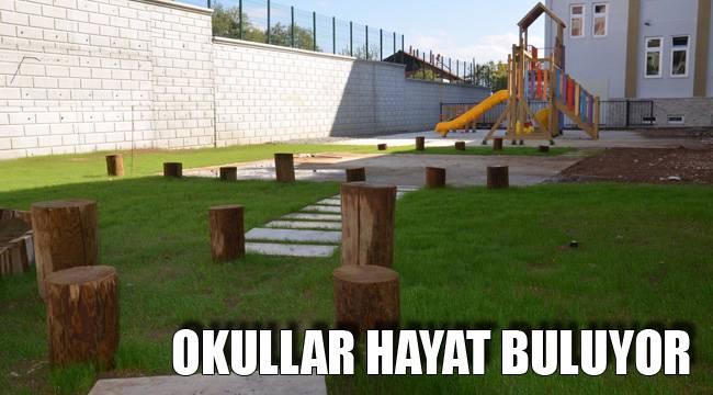 Acıpayam Belediyesi Park ve Bahçe Müdürlüğü ve Fen İşler ekiplerince okul bahçelerinde çevre düzenlemesi sürüyor.