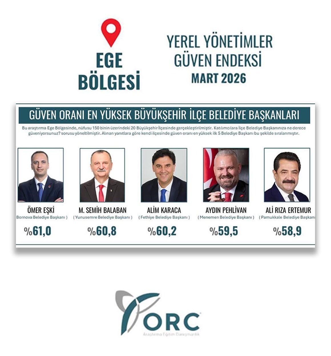 Başkan Ertemur, sonuçların ardından sosyal medya hesabından yaptığı paylaşımda şu ifadeleri kullandı:“ORC Araştırma Şirketi’nin Ege Bölgesi Yerel Yönetimler Güven Endeksi araştırması kapsamında ‘Güveni En Yüksek Büyükşehir İlçe Belediye Başkanları’ anketinde ilk 5 Belediye Başkanı arasında yer almak bizlere büyük bir gurur yaşattı.