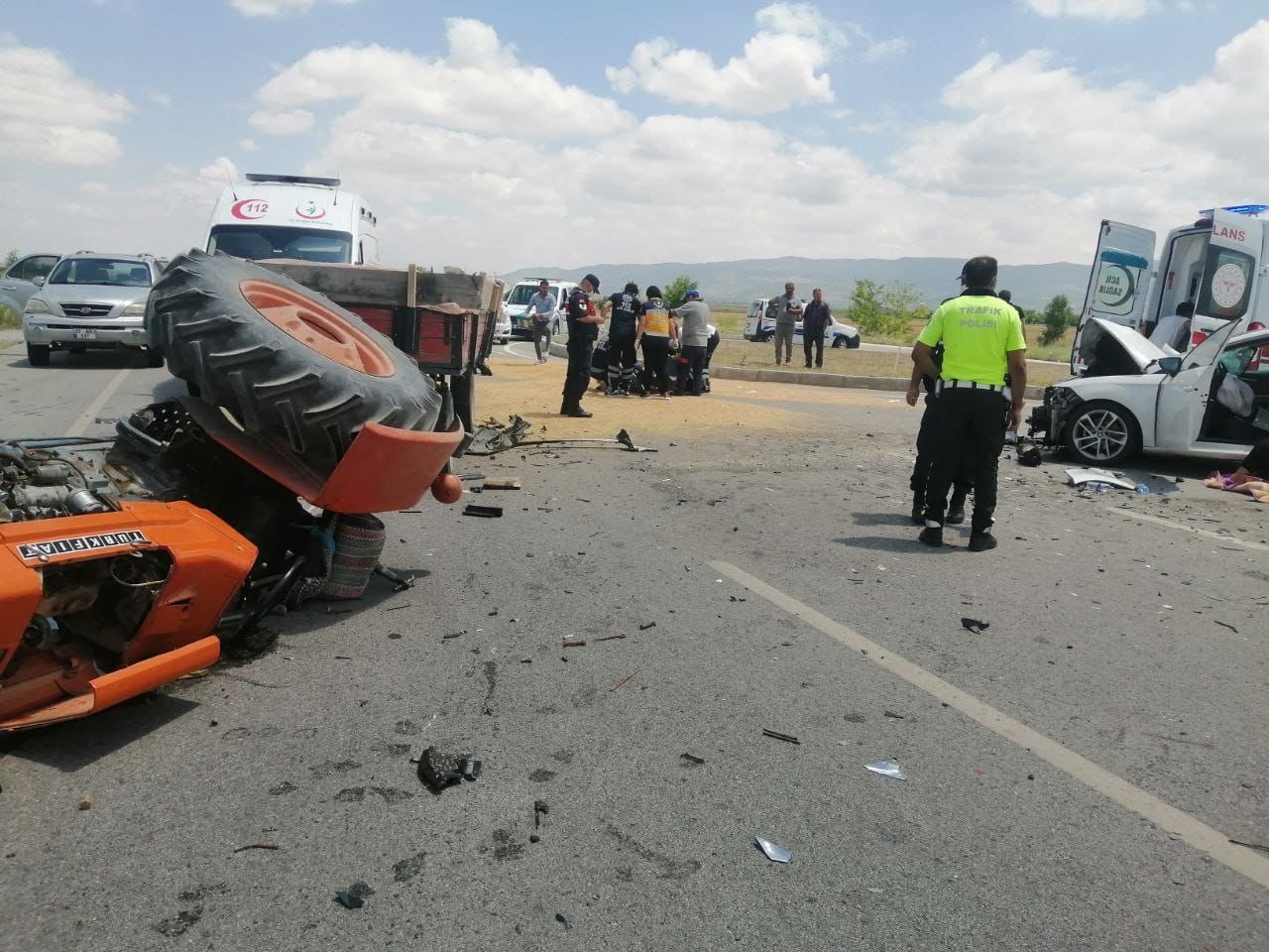 Kaza, Çivril ilçesi Denizli - Çivril karayolu üzerinde meydana geldi. Edinilen bilgilere göre; Eyüp Kocabaş idaresindeki 54 D 7230 plakalı römorkuna buğday yüklü traktör ile tarladan evine gitmek üzere yola çıktı. Tali yoldan ana yola bağlanmak istediği sırada 60 SC 622 plakalı Gülistan Kaya, yönetimindeki otomobil ile çarpıştı. Çarpışmanın etkisiyle traktör devrilirken römorkta bulunan buğdaylar ise yola saçıldı. Çevredeki vatandaşların ihbarı üzerine bölgeye jandarma ve sağlık ekipleri sevk edildi. Devrilen traktörde bulunan Eyüp Kocabaş ve Ayşe Kocabaş ile kaza yapan otomobil içerisindeki sürücü Gülistan Kaya, Mustafa Kaya, Viyan Kaya ve Zana Kaya kaza sonucu yaralandı. Bölgeye sevk edilen sağlık ekipleri yaralıları çevre hastanelere sevk ederken 6 yaralının sağlık durumunun iyi olduğu öğrenildi.