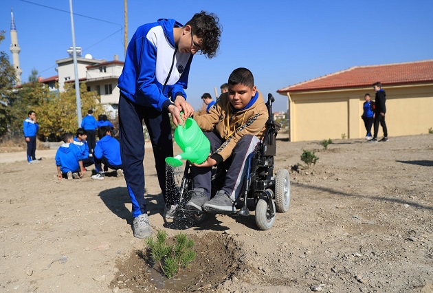 Yeniden Diriliş Özel Eğitim ve Rehabilitasyon Merkezi ve Hüsamettin Kulaklı İlkokulu’nda öğrenim gören öğrencilerle birlikte yüzlerce fidanı toprakla buluşturan Başkan Örki’ye öğrenciler büyük ilgi gösterdi.
