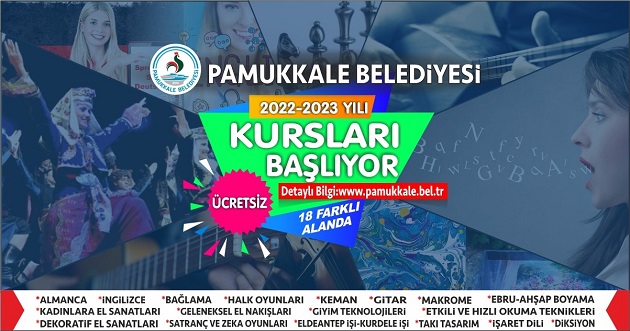 ‘Pamukkale’de Kurs Zamanı’ sloganıyla başlatılan ve vatandaşlardan yoğun ilgi gören kursların 2022-2023 dönemi için başvurular başladı.