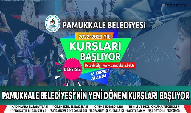 Pamukkale Belediyesinin hem öğretici hem de yetenek geliştirici birbirinden farklı ücretsiz kursları için yepyeni bir dönem için başlıyor. Pamukkale Belediye Başkanı Avni Örki, “Vatandaşlarımızın her dönem yoğun ilgi gösterdiği ücretsiz beceri geliştirici kurslarımızın yeni dönemine başlıyoruz. 18 farklı alandaki kurslarımıza kendini geliştirmek isteyen ya da boş zamanlarını güzel bir hobiyle değerlendirmek isteyen tüm vatandaşlarımızı bekliyoruz” dedi.