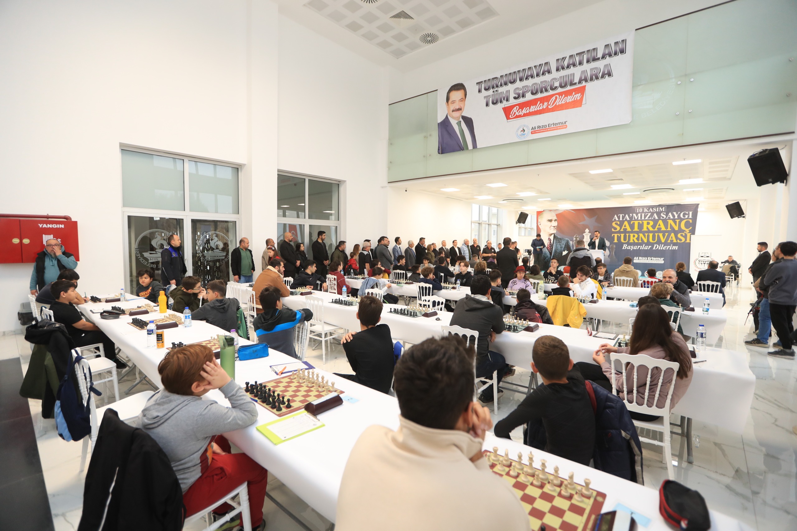 Pamukkale Belediyesi, Türkiye Cumhuriyeti’nin kurucusu Gazi Mustafa Kemal Atatürk’ün vefatının 86. Yıl dönümünde özel etkinlikler düzenledi. Pamukkale Belediyesi Aktepe Sosyal Tesisleri’nin ev sahipliğinde Türkiye Satranç Federasyonu Denizli İl Temsilciliği ve Denizli Barosu’nun katkılarıyla düzenlenen “Ata’mıza Saygı Satranç Turnuvası”na 20 ilden 300’e yakın lisanslı sporcu katıldı. Turnuvanın açılışına Denizli Büyükşehir Belediye Başkanı Bülent Nuri Çavuşoğlu, Pamukkale Belediye Başkanı Ali Rıza Ertemur, Denizli Baro Başkanı Ufuk Kök, CHP İl Başkanı Ali Osman Horzum, CHP Pamukkale İlçe Başkanı Uğur Coşkun, Türkiye Satranç Federasyonu Denizli İl Temsilcisi İsmail Sarı, Pamukkale Belediye Meclis üyeleri ve sporcular katıldı.
