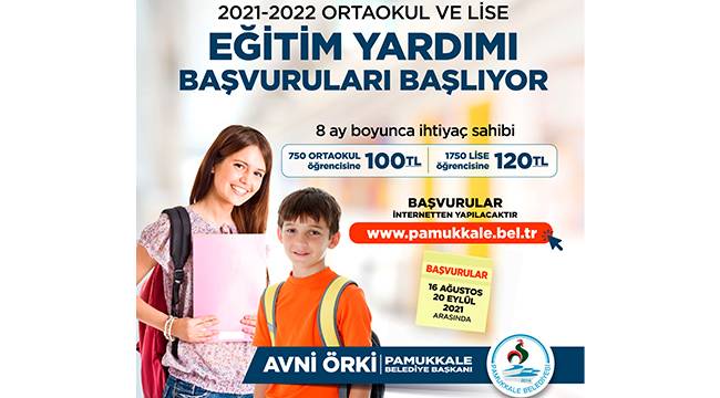 Pamukkale Belediyesi, eğitim alanındaki yatırımlarının yanı sıra eğitim yardımı ile de hem öğrencilerin hem de velilerin destekçisi olmayı bu yıl da sürdürüyor. Pamukkale Belediyesinin 16 Ağustos 2021 tarihinde başlayan eğitim yardımı başvuru süresi 20 Eylül 2021 tarihinde sona erecek. Ortaokul ve lise öğrencisi olmak üzere toplam 2 bin 500 öğrenciye, 8 ay boyunca eğitim yardımı yapılacak. BAŞVURULAR İNTERNET ÜZERİNDEN Pamukkale ilçesinde ikamet eden ortaokul ve lise öğrencilerini kapsayan eğitim yardım başvuruları www.pamukkale.bel.tr adresinden yapılıyor. Pamukkale Belediyesinin resmi web sitesi www.pamukkale.bel.tr adresindeki Eğitim Yardımı başvuru linki tıklanarak şartlar dikkatlice okunduktan sonra ön başvuru yapılabiliyor. Pamukkale Belediyesinden yapılan yazılı açıklamada, “İnternet üzerinden ön başvuru yapılmadan önce tüm maddelerin dikkatlice okunması gerekmektedir. Belirtilen şartlara uygun olarak, internetten başvuru yapıldıktan sonra 20.09.2021 tarihine kadar evrakların Atatürk Caddesi’ndeki Ek Hizmet binasında bulunan Sosyal Destek Müdürlüğü’ne teslim edilmesi gerekmektedir. Önce başvuru sonrası, belirtilen süre içerisinde evraklarını teslim etmeyenlerin başvuruları geçersiz sayılacaktır” denildi.
