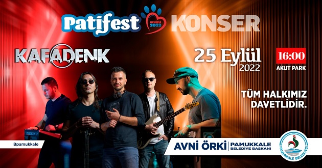 Kafadenk grubunun konserinin ayrı bir renk katacağı “Denizli Patifest 2022” 25 Eylül 2022 Pazar günü saat 16.00’da Kınıklı Mahallesi 6007 Sokaktaki Akutpark’ta gerçekleşecek.