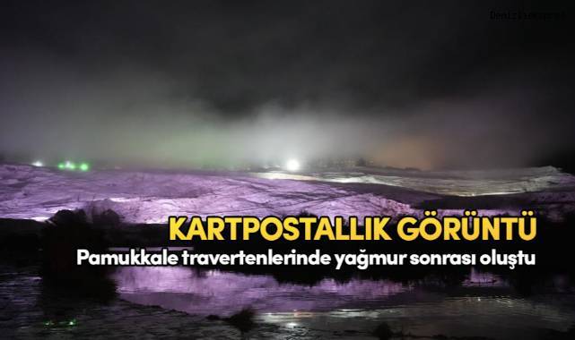 Denizli'de gün boyunca etkili olan şiddetli yağmurun ardından akşam saatlerinde kent genelinde yoğun sis oluştu. UNESCO Dünya Mirası Listesi'nde yer alan ve "Beyaz cennet" olarak bilinen Pamukkale travertenleri de sisle birlikte adeta farklı bir atmosfere büründü. Travertenlerin bembeyaz dokusuna eşlik eden sis tabakası, bölgede kartpostallık manzaralar oluşturdu.
