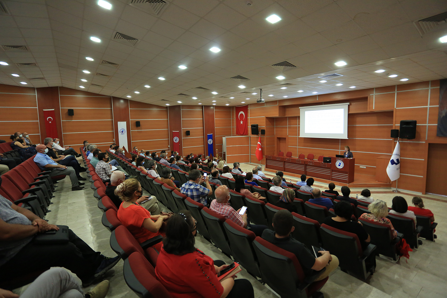 İktisadi İdari Bilimler Fakültesi A Blok Konferans Salonu’nda düzenlenen toplantıya Rektör Prof. Dr. Ahmet Kutluhan başta olmak üzere, Rektör Yardımcısı Prof. Dr. Necip Atar, PAÜ Genel Sekreteri Doç. Dr. Mehmet Çiçek, Gençlik ve Spor İl Müdürü Ahmet İbanoğlu, dekanlar, idari yöneticiler ve akademisyenler katıldı.Yüz yüze eğitimin başlayacağı yeni eğitim öğretim yılı için düzenlenen Koronavirüs Komisyonu Toplantısı, kampüs içinde akademik ve idari birimlerde alınması planlanan tedbirler hakkında Tıp Fakültesi Öğretim Üyesi Doç. Dr. Tuğba Sarı’nın gerçekleştirdiği sunum ile başladı. Pandemi ile ilgili Sağlık Bakanlığı ve YÖK genelgeleri doğrultusunda yaptığı çalışmalar kapsamında Doç. Dr. Sarı, gerçekleştirdiği sunumda şu konuları ele aldı: Her binanın özelliklerine göre hazırlık yapılması, binalarda pandemi kurallarına uyum kontrollerini Kovit 19 mücadelesinde görev yapan hekim ve hemşirelerin gerçekleştirmesi, bina girişlerinde öğrencilerin aşı, PCR ve HES kodu kontrollerinin yapılması, Kovit pozitif vaka çıktığında neler yapılması gerektiği, Kovit pozitif olduğunda eğitimin nasıl devam edeceği, yüz yüze derslerde, laboratuvarda ve bina içlerinde maske zorunluluğu olması.