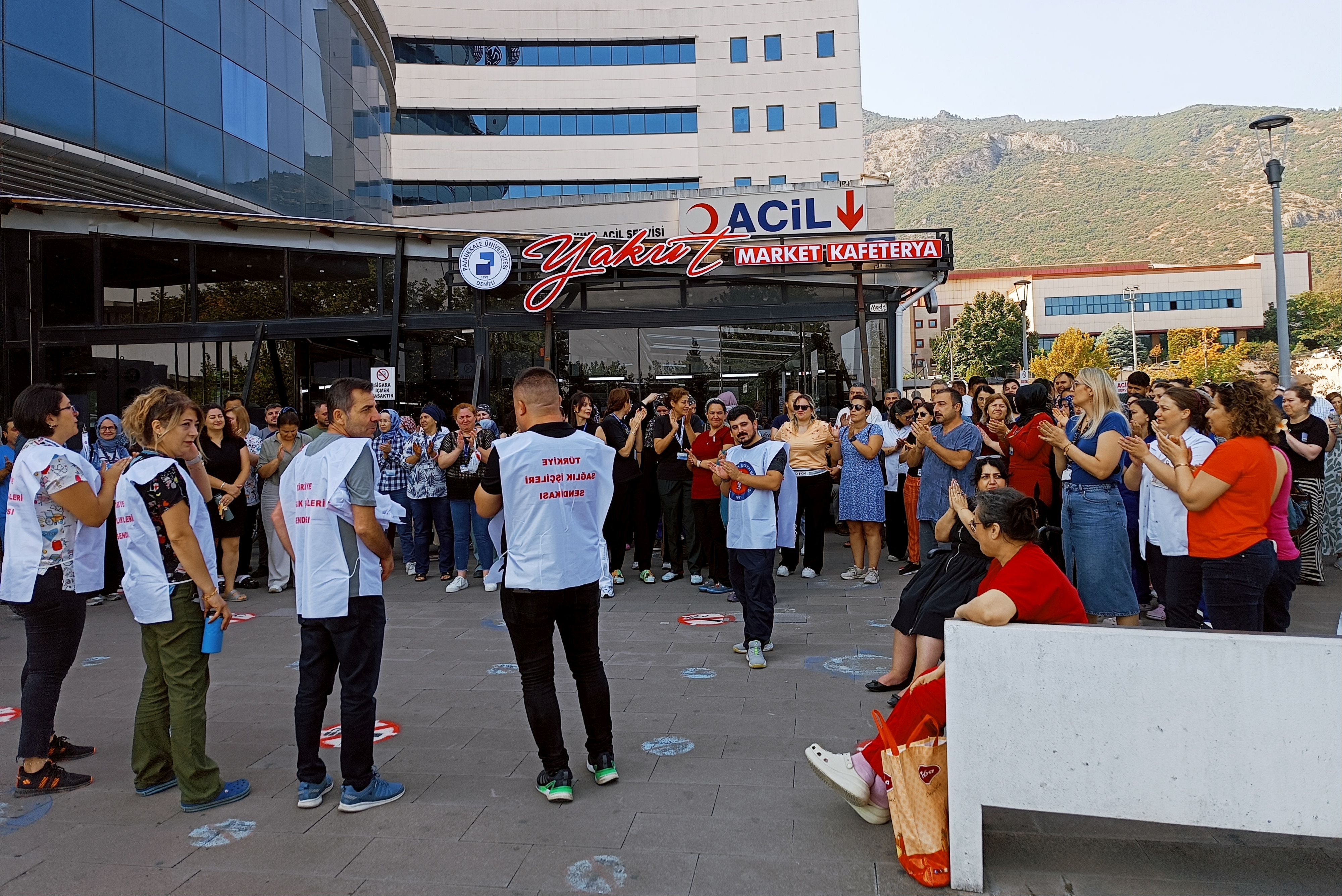 Pamukkale Üniversitesi (PAÜ) Hastanesi’nde görev yapan sağlık işçileri, 7 aydır imzalanmayan sözleşme ve yapılmayan zam nedeniyle iş bırakıp oturma eylemi yaptı. İşçiler, vergi yükünün azaltılması, eşit işe eşit ücret ve insanca yaşam taleplerini dile getirirken, geçim sıkıntısının her geçen gün daha da arttığına dikkat çekti.