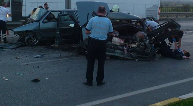 Afyonkarahisar'dan Denizli istikametine giden Mehmet Topuzayak (25) yönetimindeki 20 F 9195 plakalı otomobil, Pınarkent çevre yolu kavşağında aynı istikamette giden Ramazan Sarıkoç'un (54) kullandığı 09 S 9177 plakalı otomobille çarpıştı.Kazada, sürücüler ile araçlardaki Mertcan Akıllı (24), Hacer Sürgütavi (26) ile ikiz bebekleri Hatice (1) ve İbrahim Sürgütavi (1) yaralandı.Sıkışan yaralılar, itfaiye görevlilerince araçlardan çıkarılarak 112 Acil Sağlık ekiplerince ambulanslarla Denizli'deki hastanelere kaldırıldı.Yaralılardan Ramazan Sarıkoç'un durumunun ağır olduğu bildirildi.