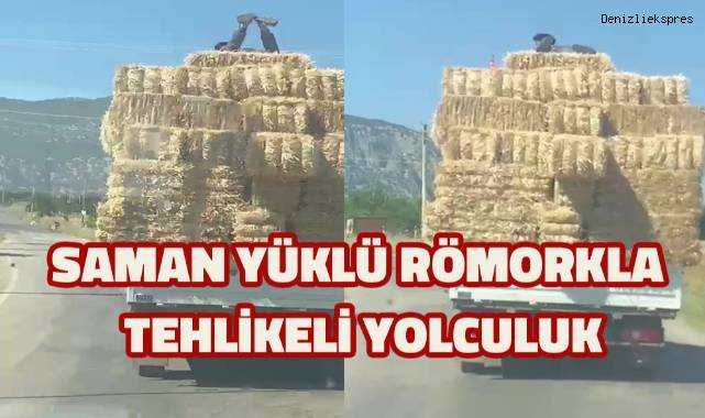 Denizli'de metreler yüksekliğindeki samanların üzerinde gerçekleştirilen tehlikeli yolculuk başka bir aracın kameralarına yansıdı. Öte yandan yapılan tehlikeli yolculuğun sonucu ise merak konusu oldu.
