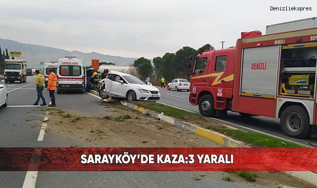 Denizli'nin Sarayköy ilçesinde direksiyon hakimiyetini kaybeden sürücünün refüje çıkarak durabildiği kazada 3 kişi yaralandı.Kaza, Denizli’nin Sarayköy ilçesi Cumhuriyet Mahallesi'nde meydana geldi. Edinilen bilgiye göre; kent merkezi yönüne seyir halinde olan otomobil, sürücüsünün direksiyon hakimiyetini kaybetmesi sonucu kontrolden çıktı.