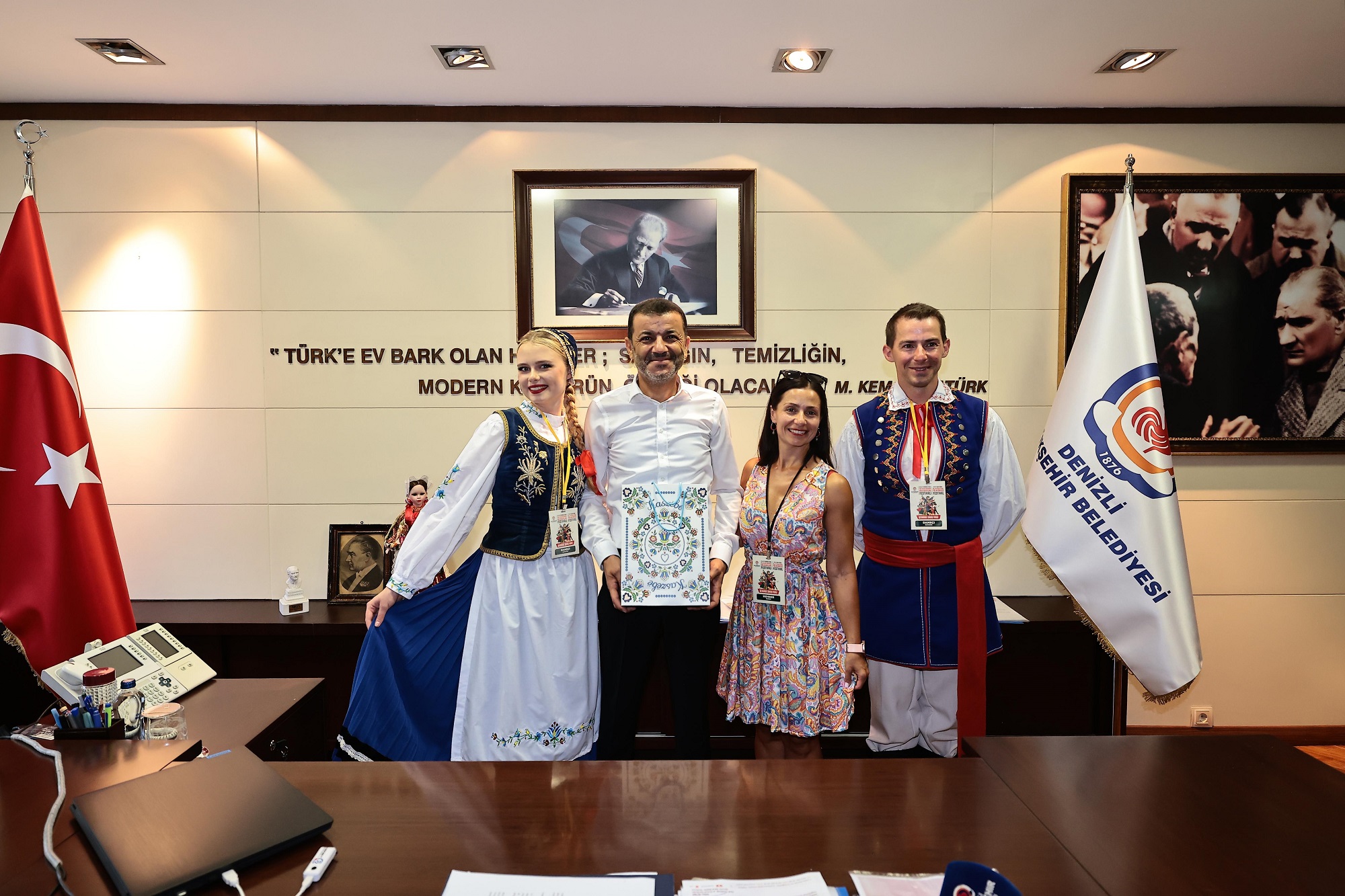 Biz istiyoruz ki, halkların kardeş olduğunda bu dünyada sömürgeci güçlerin yaşama şansı olmayacaktır. Festivalimiz de birlikte barışın tüm dünyaya yayıldığı ve insanların birbirini sevgiyle kucakladığı, kendi gemisini kurtaranların kaptan olduğu değil, hep beraber olduğumuzda mutlu olduğumuzu görecek dostlarla beraber yeni güzel günlerde görüşmeyi ve festivalimizin Denizli'ye hayırlı olmasını diliyorum” ifadelerini kullandı. Programın ardından 12 ülkeden gelen konukların temsilcileri Başkan Bülent Nuri Çavuşoğlu’nu makamında ziyaret etti.