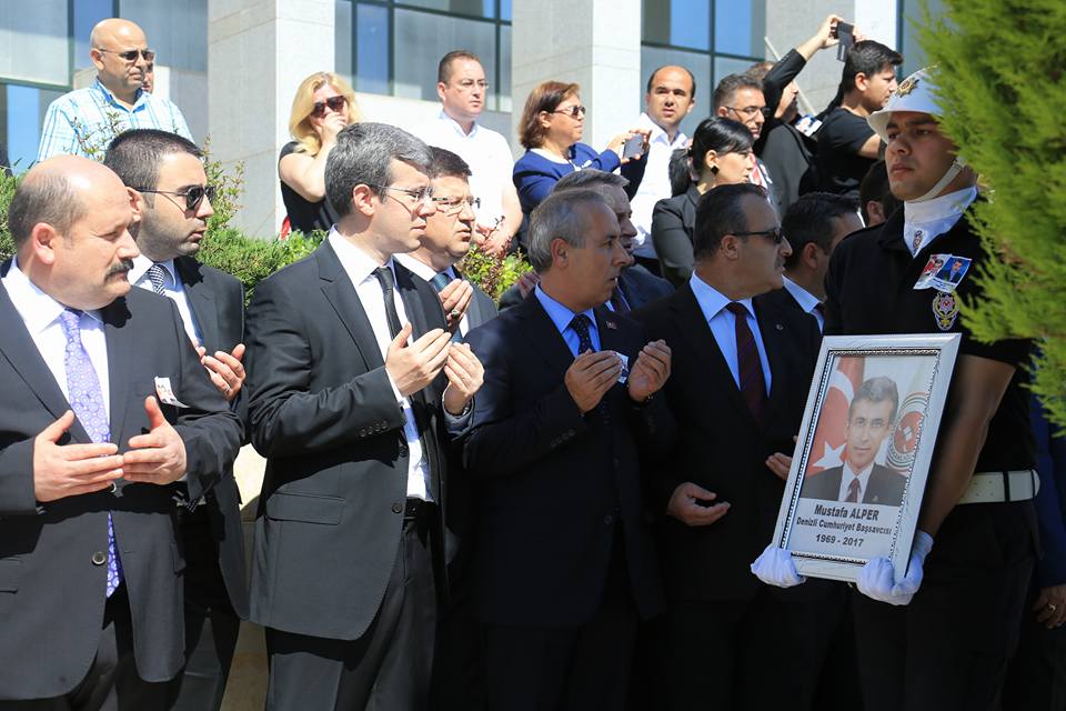 Başsavcı Mustafa Alper ve şoförü Muzaffer Akşehirli için Adliye Sarayı'nda tören düzenlendi. Törene Adalet Bakanı Bekir Bozdağ, Denizli Milletvekilleri, Denizli Valisi Ahmet Altıparmak, Denizli Büyükşehir Belediye Başkanı Osman Zolan, Pamukkale Üniversitesi Rektörü Hüseyin Bağ, Baro Başkanı Müjdat İlhan, Adalet Komisyonu Başkanı Ünal Yalçınkaya ile Adalet Bakan Yardımcısı Bilal Uçar, Adalet Bakanlığı Müsteşarı Kenan İpek, HSYK Başkanvekili Mehmet Yılmaz ve 1. Daire Başkanı Halil Koç ve HSYK üyesi Muharrem Özkaya, Denizli Baro Avukatları, İlçe Belediye Başkanları ve vatandaşlar katıldı. Denizli Müftüsü Mehmet Köse’nin yaptığı dua ile birlikte Başsavcı Mustafa Alper ve şoförü Muzaffer Akşehirli sonsuzluğa uğurlandı. Başsavcı Mustafa Alper, toprağa verilmek üzere Söke’ye gözyaşları içerisinde uğurlandı.