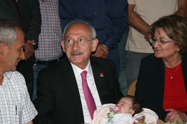 Kılıçdaroğlu, son olarak ilçede en fazla yıkım ve ağır hasarlı yapının olduğu Tutluca Mahallesi’ndeki depremzedeleri ziyaret etti. Kılıçdaroğlu, burada dedesi tarafından kucağına verilen 4 aylık Güneş bebeği sevdi. Kılıçdaroğlu, buranın ardından kentten ayrıldı.