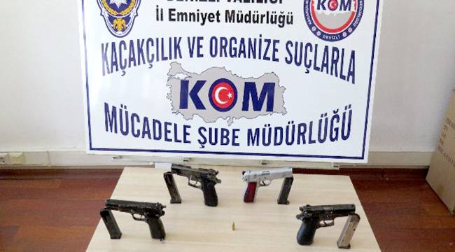 Yasadışı yollardan getirilerek eğlence mekanlarında silah kaçakçılığı yapmak isteyen şahısların olduğu tespit edildi.Aydın ili Buharkent ilçesinde ikamet eden süpheli bir şahıs görevli ekiplerce takibe alındı. Şahsın temin ettiği ruhsatsız silahları kendi aracı içerisinde motor kaputuna gizlediği tespit edildi. İlgili mahkeme kararı ile bahse konu araçta yapılan aramada, 1 adet Smith wesson marka, 1 adet kobra marka, 2 adet Browning marka olmak üzere toplam 4 adet 9 mm çapında tabanca ve 1 adet 9 mm çaplı fişek bulunarak el konuldu.Ayrıca yürütülen çalışma esnasında yapılan aramalarda Yol Kesmek Suretiyle Birden Fazla Kişiyle Yağma suçundan arandığı tespit edilen şüpheli bir şahıs tespit edildi. Şahsın üst aramasında ruhsatsız olduğu tespit edilen 1 adet 7,65 mm çaplı Browning marka tabanca, 3 adet 7,65 mm çaplı fişek bulunarak el konuldu.Konu ile ilgili olarak yakalanan 1 şüpheli şahıs hakkında “Silah Ticareti Yapmak” suçundan, 1 şüpheli şahıs hakkında da “Ateşli Silahlar ve Bıçaklar Hakkında Kanun” kapsamında ruhsatsız silah taşımak suçlarından işlem yapıldı. Silah Ticareti Yapmak suçundan adli mercilere sevk edilen 1 şahıs tutuklandı.
