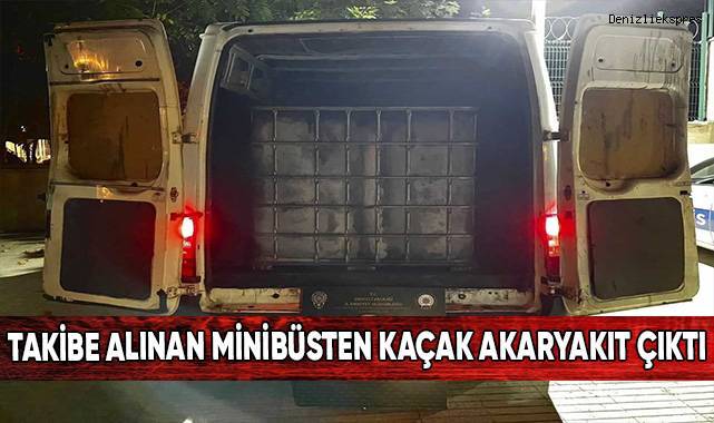 Denizli’de takibe alınan minibüsten plastik tanklar içine doldurulmuş 2 bin 800 litre kaçak akaryakıt ele geçirildi.