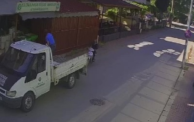 Denizli’nin Çivril ilçesinde süratli bir şekilde yoluna devam eden motosiklet, fark edemediği yük indiren kamyonete arkadan çarptı. Hiç fren yapmadan kamyonete çarpan sürücünün ağır yaralandığı kaza, saniye saniye kameraya yansıdı.