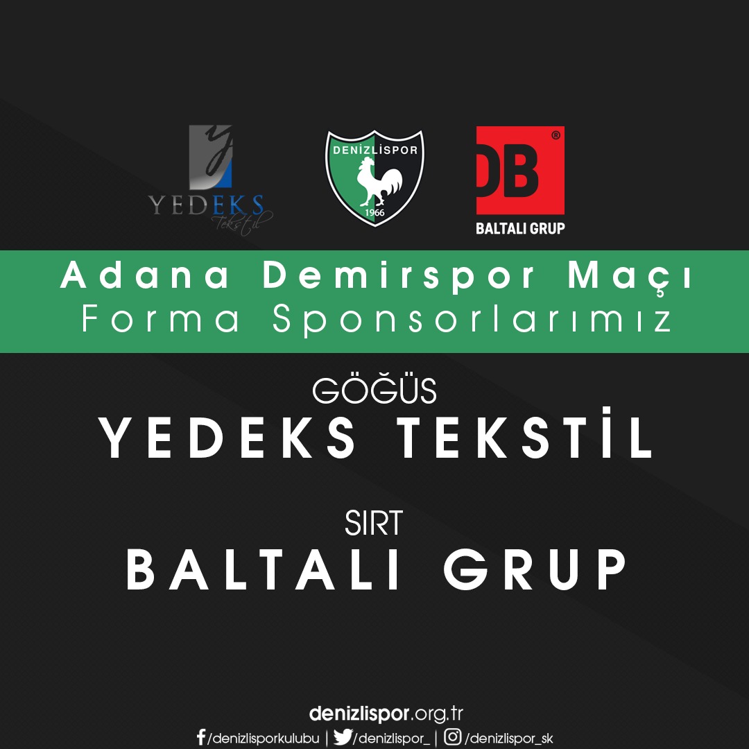 Denizlispor Kulübü’nden yapılan açıklamada; Denizlispor Yedeks Tekstil ve Baltalı Grrup şirketleri ile Adana Demirspor maçında geçerli olmak üzere tek maçlık forma göğüs ve sırt sponsorluk anlaşması için imzalar atıldığı belirtildi.Şampiyonluk yolunda emin adımlarla ligde başarılara imza atan Denizlispor, Yönetimin de bu yolda maddi destek arayışlarını sürdürüyor. Yönetim, Yedeks Tekstil sahibi Seyfi Başer ile görüşerek Adana Demirspor karşılaşmasında forma göğüs kısmına alınan reklam sponsorluğu ile 100 bin liralık anlaşmaya imza attı. Yönetim bunun yanı sıra Baltalı Grup sahibi Derya Baltalı ile bu maç için 100 bin liralık forma sırt reklam sponsorluk anlaşması yaparak kulüp kasasına 200 bin liralık gelir elde etti.