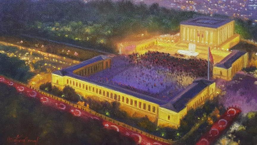 "Atamıza olan sevgimizi ölümsüzleştirmek arzusuyla paletimi elime aldım. 'Sönmeyen Cumhuriyet Işığımız' adlı 30×40 cm. boyutlarındaki tuval üzeri yağlı boya tekniği ile resmettiğim triptik (üçleme) çalışmamda Anıtkabir’i farklı açılardan resmederek gelecek nesillere sanatsal bir belge bırakmak istedim. Eserlerimizi sonsuza dek yaşayacağına inanarak resmederiz ve bu bir anlamda ölümsüzlük duygusunu hissetmemizi sağlar. Resimlerimizin bizden sonraki emanetçileri de bilinçli koleksiyonerlerdir, sorumluluk duygusu ile geleceğe miras olan sanat eserlerini korur ve sahip çıkarlar. Millet olarak biz de Atatürk’ün eseri olan 'Cumhuriyet'in değerini biliyor ve 1923’ten beri tıpkı koleksiyonerler gibi sahip çıkıyor ve yaşatıyoruz, dünya durdukça var olacağına inanıyoruz."