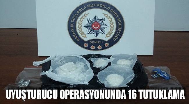Denizli Emniyet Müdürlüğü görevlileri tarafından uyuşturucu madde ticareti yapmak isteyen şahıs ve organizasyonlara yönelik düzenlenen operasyonda 16 kişi tutuklandı.