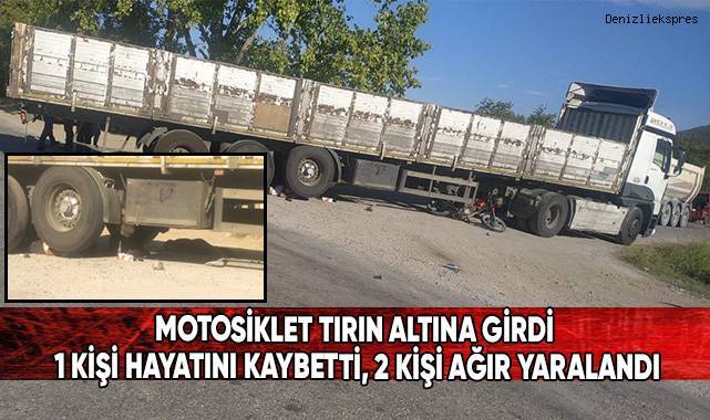 Denizli’nin Honaz ilçesinde tırın altına aldığı motosikletteki yabancı uyruklu 3 kişiden 1’i hayatını kaybetti, 2’si ağır yaralandı.