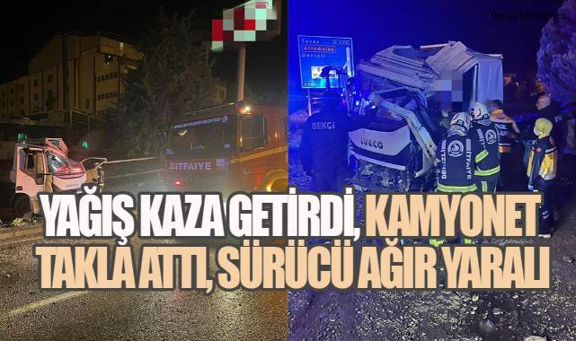 Kaza, Denizli–Muğla karayolu üzerinde meydana geldi. Edinilen bilgiye göre, henüz sürücüsünün kimliği öğrenilemeyen kamyonet, yağışlı havanın etkisiyle kayganlaşan yolda kontrolden çıktı. Savrulan araç, yol kenarındaki bariyerleri aşarak takla attı.