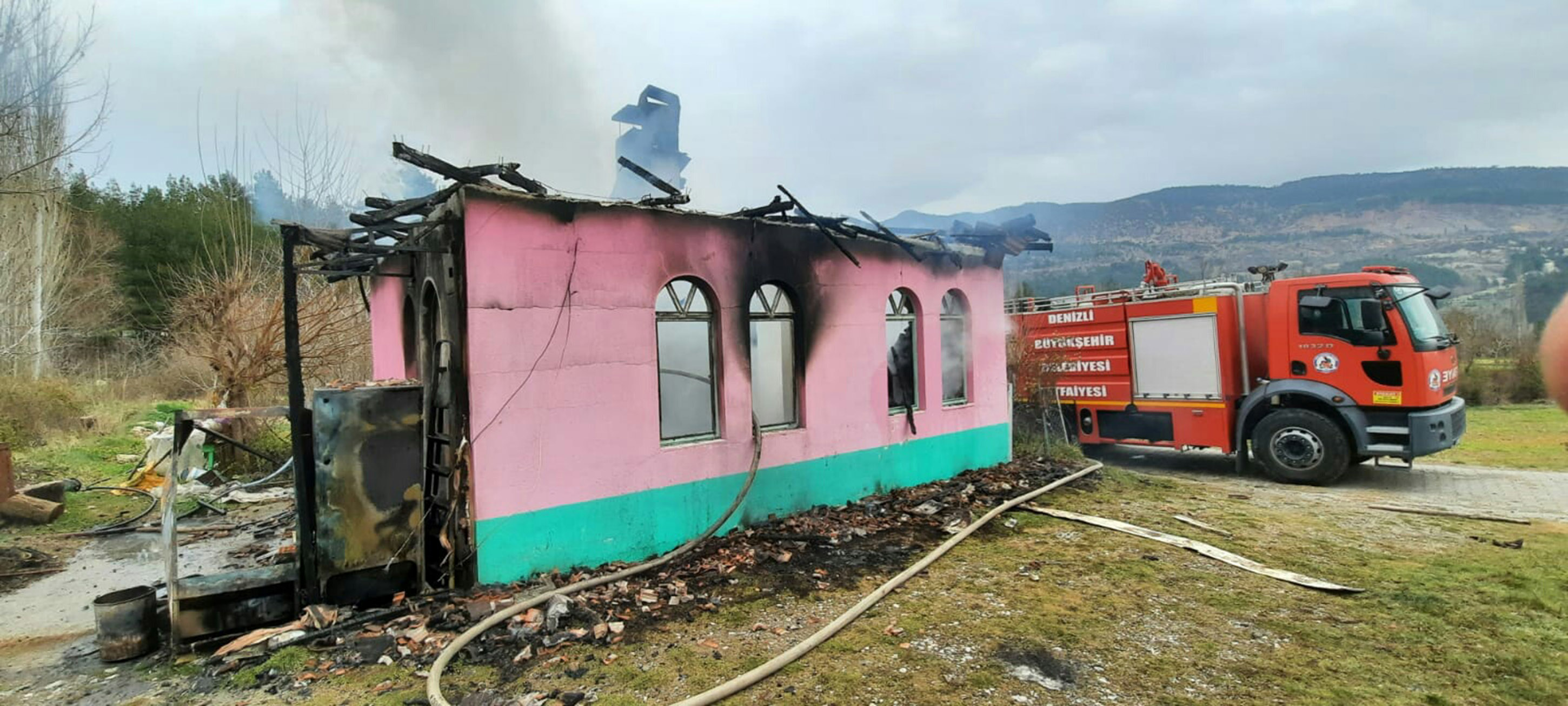Abay'a (70) ait tek katlı binada yangın çıktı. Denizli Büyükşehir Belediyesi İtfaiye
