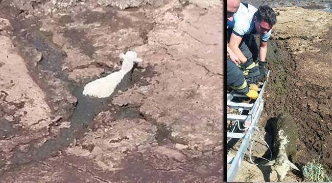 Pamukkale İlçesi Goncalı mahallesinde bataklık alana düşen kuzuyu Denizli Büyükşehir Belediyesi itfaiye ekipleri kurtardı.