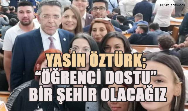 Öztürk; Denizli’ye üniversite eğitimi almak için gelen öğrencilerin barınma sorunlarını tamamen çözeceklerini, öğrencilerin bütün taleplerini karşılayan yurtlar inşa edeceklerini ve anlaşmalı restoran ve kafelerde kullanılmak üzere “Denizli Kart” sistemini hayata geçireceklerini söyledi.