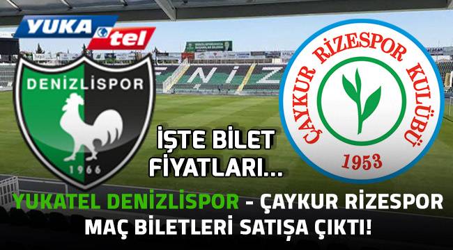 Süper Lig'in 12. haftasında yukatel denizlispor kendi sahasında Çaykur Rizespor'la karşılaşacak. Süper Lig'in 11. haftasını 11 puanla 14. sırada tamamlayan Yukatel Denizlispor, 14 puanla 10. sırada olan Çaykur Rizespor'u kendi sahasında konuk edecek. Yukatel Denizlispor, Beşiktaş yenilgisinin ardından milli maç nedeniyle lige verilen arayı çok iyi değerlendirdi. 2 hafta boyunca yoğun çalışma yapan yeşil-siyahlı ekip Çaykur rizespor karşısında 3 puan almak istiyor. Yukatel Denizlispor, Çaykur Rizespor karşılaşmasının biletleri satışa çıktı.Bilet fiyatları şöyle olacak;Kale Arkası 20TL, Misafir Tribünü 20TL, Maraton 40TL, Kapalı D ve B üst 60TL, A ve E Tribünlerin Tamamı 40TL, Loca Önü 100TL, VIP 100TL