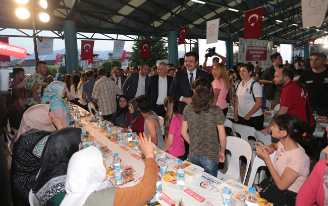 Denizli Büyükşehir Belediyesinin yapımını tamamladığı Anafartalar-Dokuzkavaklar Kapalı Yüzme Havuzu ve Spor Komplesi'nin açılışı Ekonomi Bakanı Nihat Zeybekci'nin katılımıyla yapıldı. Denizli Büyükşehir Belediyesinin kent merkezi ve 4 ilçede yaptığı 7 kapalı yüzme havuzundan birisi olan Anafartalar-Dokuzkavaklar Kapalı Yüzme Havuzu ve Spor Kompleksi de törenle hizmete açıldı. Denizli Büyükşehir Belediyesinin Anafartalar Kapalı Pazaryeri'nde düzenlediği mahalle iftarında açılışı gerçekleştirilen programa, Ekonomi Bakanı Nihat Zeybekci, eşi Ayşen Zeybekci, Denizli Milletvekilleri Şahin Tin, Cahit Özkan, Denizli Büyükşehir Belediye Başkanı Osman Zolan, eşi Berrin Zolan, ilçe belediye başkanları, davetliler ve binlerce vatandaş katıldı. Mahalle sakinleri ile tek tek selamlaşan Ekonomi Bakanı Zeybekci, Başkan Zolan ve beraberindekiler vatandaşların ramazanlarını tebrik etti."YÜZME BİLMEYEN İNSANIMIZ KALMAYACAK"Denizli Büyükşehir Belediye Başkanı Osman Zolan, iftar ve açılış programına muhteşem bir katılım olduğunu belirterek, vatandaşlara teşekkür etti. Başkan Zolan, "Ramazanımız mübarek olsun. Allah'ım tutmuş olduğunuz oruçları kabul eylesin. Çok şükür biz de gece gündüz şehrimize güzellikle getirmek için çalışıyoruz" dedi. Programın gerçekleştiği Anafartalar Kapalı Pazaryeri'nin Ekonomi Bakanı Nihat Zeybekci'nin belediye başkanlığı döneminde yapıldığını anlatan Başkan Osman Zolan, "Örnek bir proje, kendisine çok teşekkür ediyorum. Bugün ayrı bir güzellik yaşıyoruz. Başta Anafartalar Mahallesi olmak üzere Fatih, Deliktaş, Dokuzkavaklar, Aktepe, Karşıyaka, Sevindik ve Sümer mahallerine hitap edecek olan bölgenin kapalı yüzme havuzunun açılışını gerçekleştireceğiz. İnşallah bu bölgemizde yüzme bilmeyen insanımız kalmayacak" dedi.